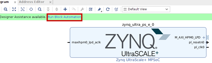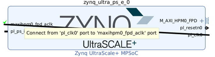 You should now see the block below. Click and drag from pl_clk0 to make a connection to maxihpm0_fpg_aclk.