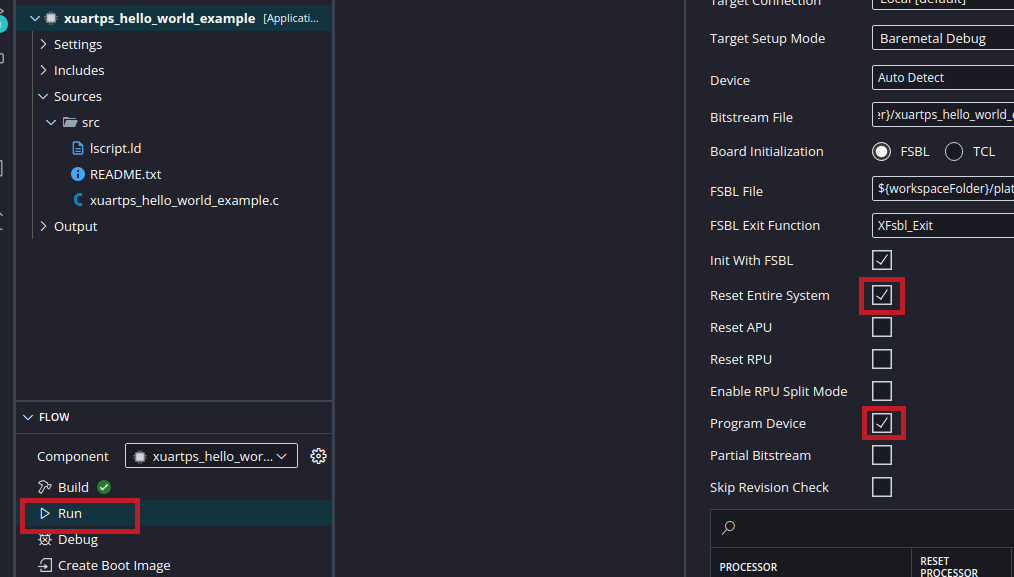 For future runs, if your hardware configurations has not been changed, you can uncheck the 'Reset Entire System' and 'Program Device' which may save some time.